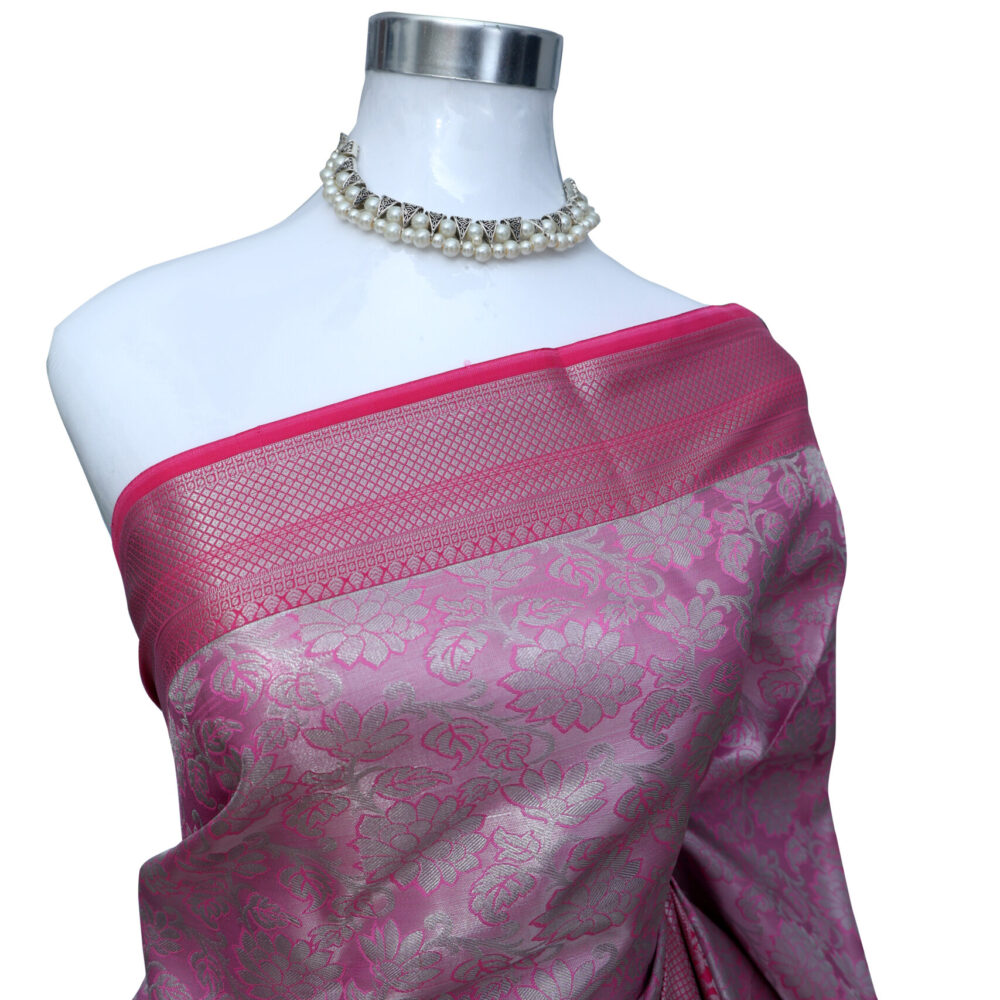 Be the first to review “Nita Ambani inspired golden soft tissue silk saree in embossed weave floral design”